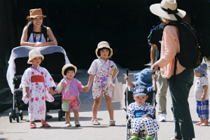 少子高齢化が社会化する昨今、沢山の子供さんを伴った家族に出会いました。夏の暑さにも負けない子供さん、その成長を見守るお母さんの幸せそうな表情を切取った一枚です。