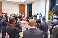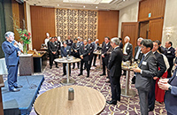 11月29日、パレスホテル東京で芙蓉懇談会社長懇親会が開催されました。損害保険ジャパンの石川社長のご挨拶に続き、サッポロビールの時松社長の乾杯のご発声で会は始まりました。その後、初参加の5名から趣向を凝らしたご挨拶がありました。