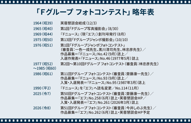 おかげさまで「Fグループ フォトコンテスト」は第50回を迎えました。 代表的な読者参加型企画として、じつに半世紀にわたって歩んできたその来歴について振り返ってみましょう。